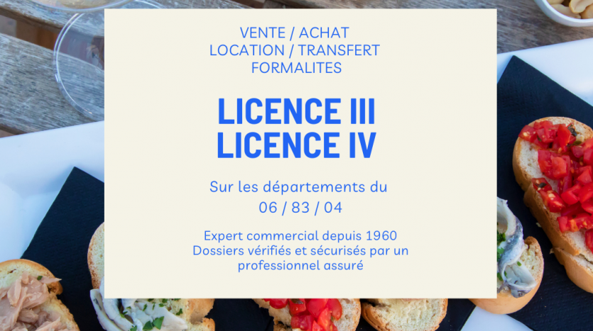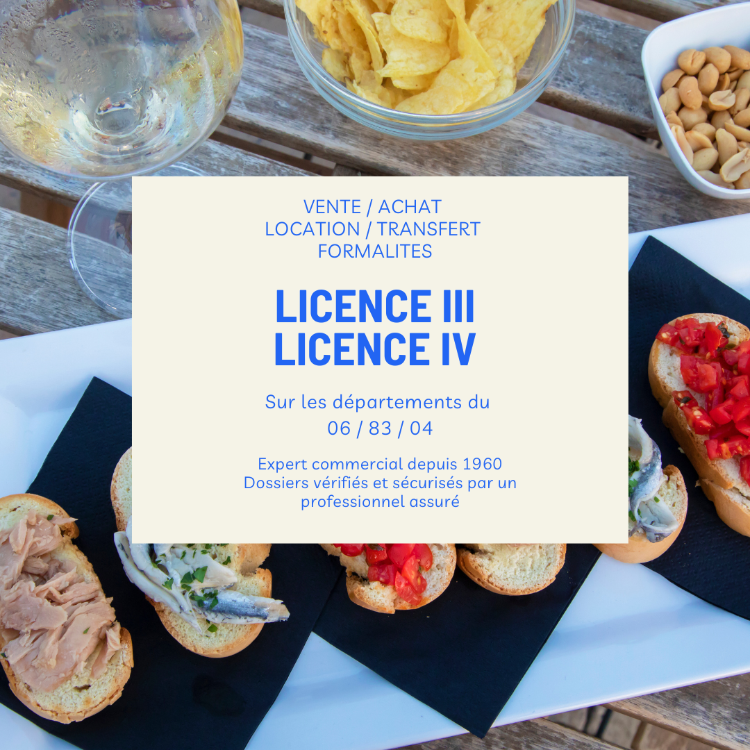 Notre cabinet vous propose la location d’une licence de débit de boissons à consommer sur place de IVéme catégorie libre et disponible sur ANTIBES..